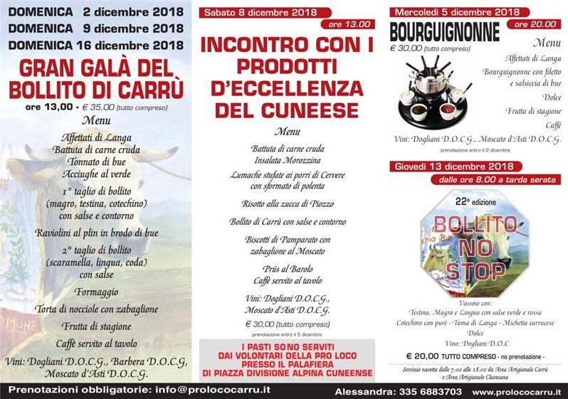 - dalle ore 9:00, presso il palafiera, "BOLLITO NO STOP" € 20 senza prenotazione
