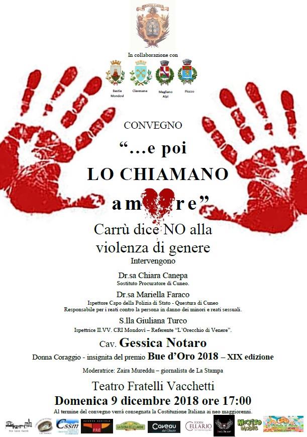 - ore 17:00 prssso Teatro F.lli Vacchetti consegna costituzione ai diciottenni, consegna Bue d'Oro 2018 a Gessica Notaro e convegno ". . .e poi lo chiamano amore"