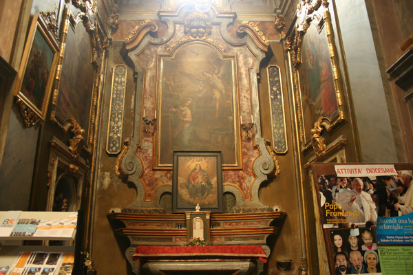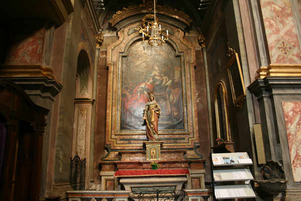 3° altare a dx (cappella minore): altare di S. Stefano (patronato Lubatti) con statua di S.Giuseppe con il bimbo Gesù