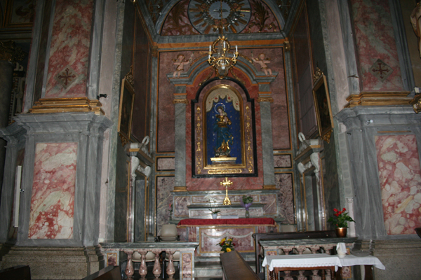 I quattro altari delle cappelle minori laterali sono rimaneggiati ampiamente nel corso del XIX secolo e conservano rari frammenti degli interventi settecenteschi.