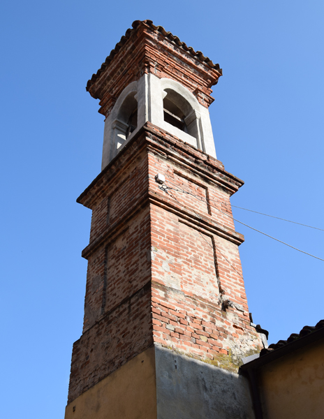 V’è una sola porta munita di serratura e di chiave che è custodita dal rettore perpetuo Calleri Domenico che è coerente alla chiesa; ne ha tutta la cura. Dalla parte di dietro della chiesa v’è una casa attigua di proprietà una volta di Marenco Tommaso ed ora di Marenco Gio. Battista. E’ provvista a sufficienza dell’occorrente per la celebrazione della S. Messa, e di un po’ di apparato, con giardinetto e tabernacolo, poiché nel giorno della festa (13 novembre, se però cade in domenica, si fa il 14) oltre a una Messa cantata circa le 8:30, verso sera vi si canta anche il Vespro e si va alla benedizione del SS. Sacramento.