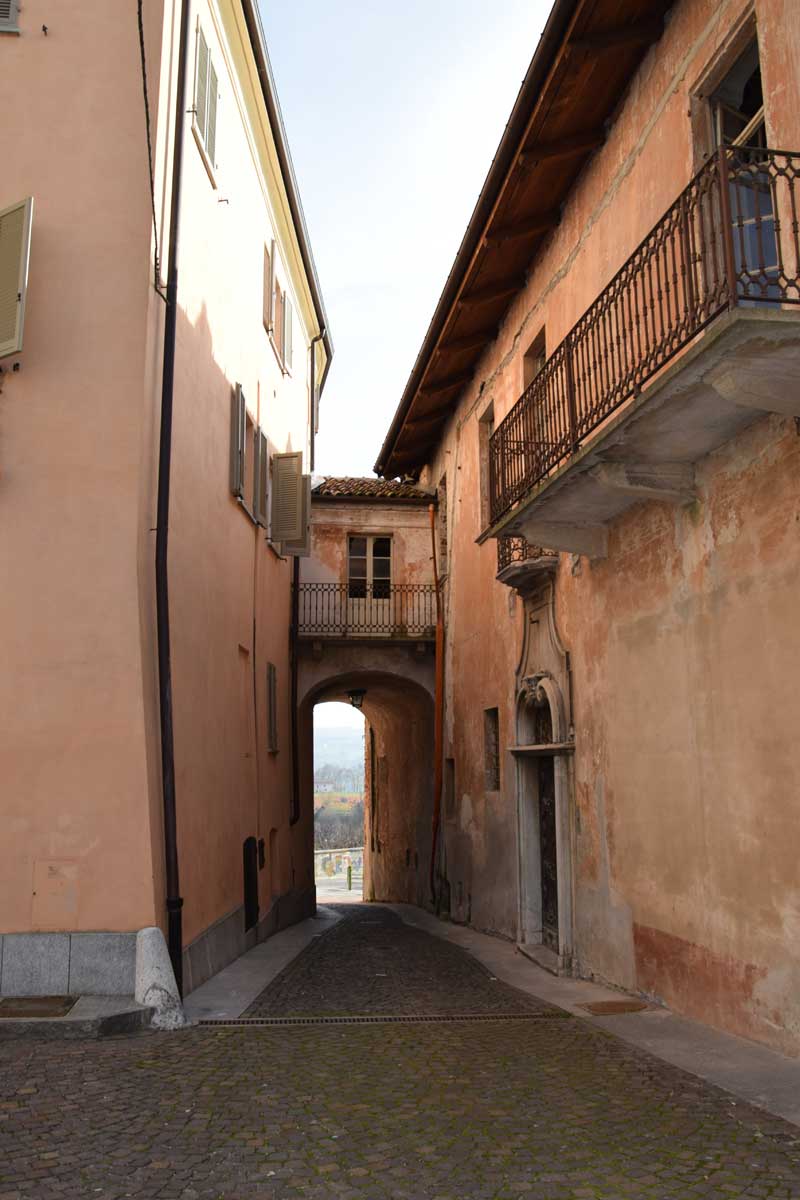 Il palazzo Alessi di Canosio è composto da due edifici distinti e collegati da un passaggio aereo, che scavalca la via della Valle.
