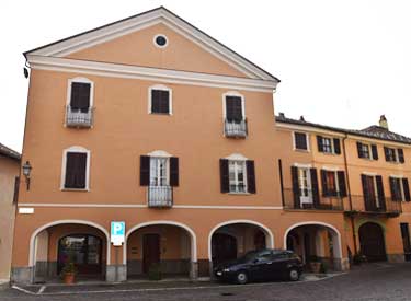 Casa Reyneri è un grande complesso edilizio, risultato di accorpamenti di vari edifici, che si affaccia sulla piazza della Parrocchia. I Reyneri erano un’antica famiglia notabile carrucese, che diede soprattutto uomini di legge. La sua presenza in paese è documentata fin dal Quattrocento. Era di proprietà dei Reyneri solo una parte del grande edificio, la parte rivolta verso l’antica via Ramezzana, l’attuale via Roma. La parte con frontone a timpano, porticata a piano terra, appartenne ai conti Costa della Trinità-Carrù, signori del luogo, e prima ancora agli Alessi di Canosio; pervenne ai Reyneri solo intorno alla metà dell’Ottocento. In questa occasione la famiglia fece ridisegnare l’intero complesso dell’edificio, che era separato dalla prima proprietà Reyneri da un vicolo a gomito. Con questo intervento si diede particolare risalto alla facciata di gusto eclettico, che guarda verso il Castello, ed è visibile dalla strada della Stazione. All’interno di casa Reyneri si conservano soffitti decorati, caratterizzati soprattutto da motivi floreali riconducibili alla seconda metà dell’Ottocento ed al primo ‘900. Sotto i portici dell’edificio a timpano sorgeva il rinomato “Caffè di Piazza”, che rimase in attività fino all’inizio del Novecento; in seguito i locali ospitarono la tipografia-cartoleria Buda. In luogo dei portici, sino all’epoca francese, erano posti il taglione e la berlina, dove venivano esposte al pubblico e punite le persone colpevoli di reati minori. Dalla piazza della Parrocchia si scende verso il Castello attraverso una breve scalinata. Un tempo era una strada in salita chiamata “al Fontanasso”, perché conduceva alla fontana del Castello. Sul Fontanasso, lo spiazzo prospiciente il Castello, si svolsero i mercati carrucesi fino alla metà dell’Ottocento. Sulla facciata di palazzo Reyneri rivolta verso il Castello, è collocato, tra le finestre, un piccolo affresco raffigurante la Vergine con il Bambino in trono, chiamata anche la Madonna del Fontanasso. L’affresco fu realizzato nella seconda metà del Quattrocento a protezione del paese e del mercato, ma va letto anche in rapporto alle “occasioni di guerra”, che potevano svolgersi nella zona sottostante pure chiamata la “Battagliera”. E’ stato restaurato negli anni ottanta del Novecento.