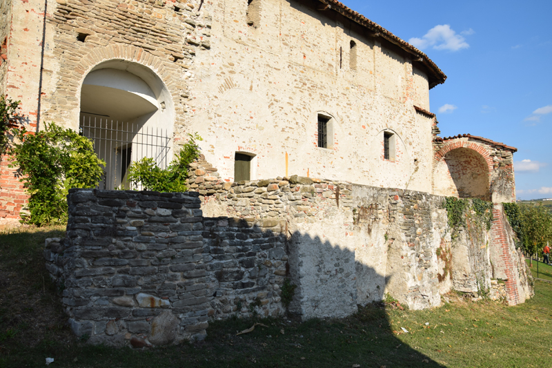 La chiesa di San Pietro era in origine a tre navate, di cui rimangono le absidi, mentre sono chiaramente visibili i resti del perimetro originale; Diplomi Imperiali e Bolle Papali la menzionano a cominciare dall’XI° secolo, attestandone l’importanza. L’edificio, dai caratteri tipicamente romanici, in pietre e conci, finestre a feritoia, archi sostenuti da pilastri, tetto a capriate lignee, era posto in prossimità di una importante via (già romana) di comunicazione e fu per circa due secoli il principale riferimento religioso cristiano in area carrucese, prima della costruzione della Chiesa Parrocchiale di Santa Maria (fondazione nel XIII° sec.) all’interno delle mura e in prossimità del sito castellano. In facciata si riscontrano alcuni archetti pensili, rari elementi decorativi lapidei che ingentiliscono il sobrio carattere dell’edificio. Il sottoportico d’ingresso, la tamponatura delle arcate come il finestrone a lunetta in facciata, si devono ad una sistemazione (riduzione) della costruzione avvenuta nel XVII° secolo; l’interno, rigoroso e spoglio, conserva un dipinto raffigurante San Pietro, un olio su tela riferibile al XVII° secolo.